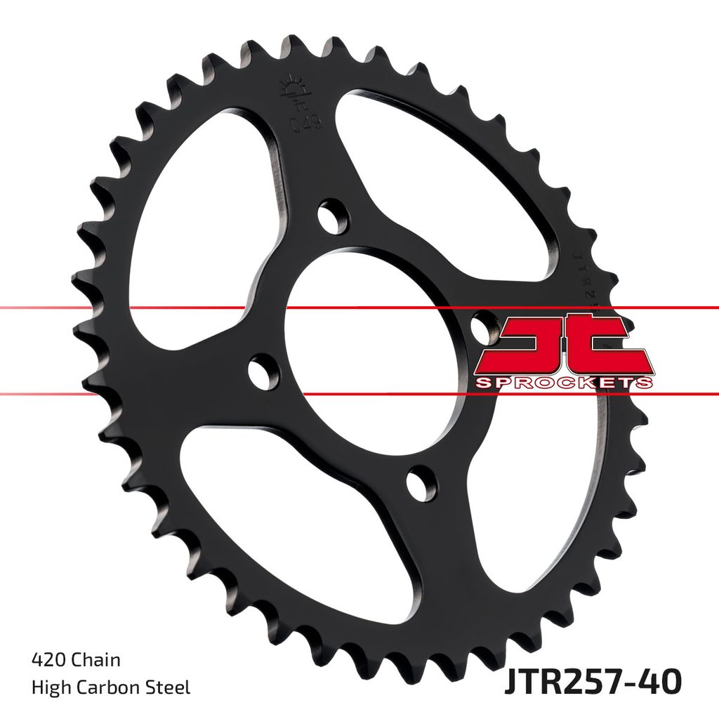 JT rozety jsou vyráběny z prvotřídní vysokopevnostní uhlíkové oceli C49. Sortiment ocelových rozet JT aktuálně čítá více než 2 500 dílů pro motocykly a čtyřkolky všech značek.