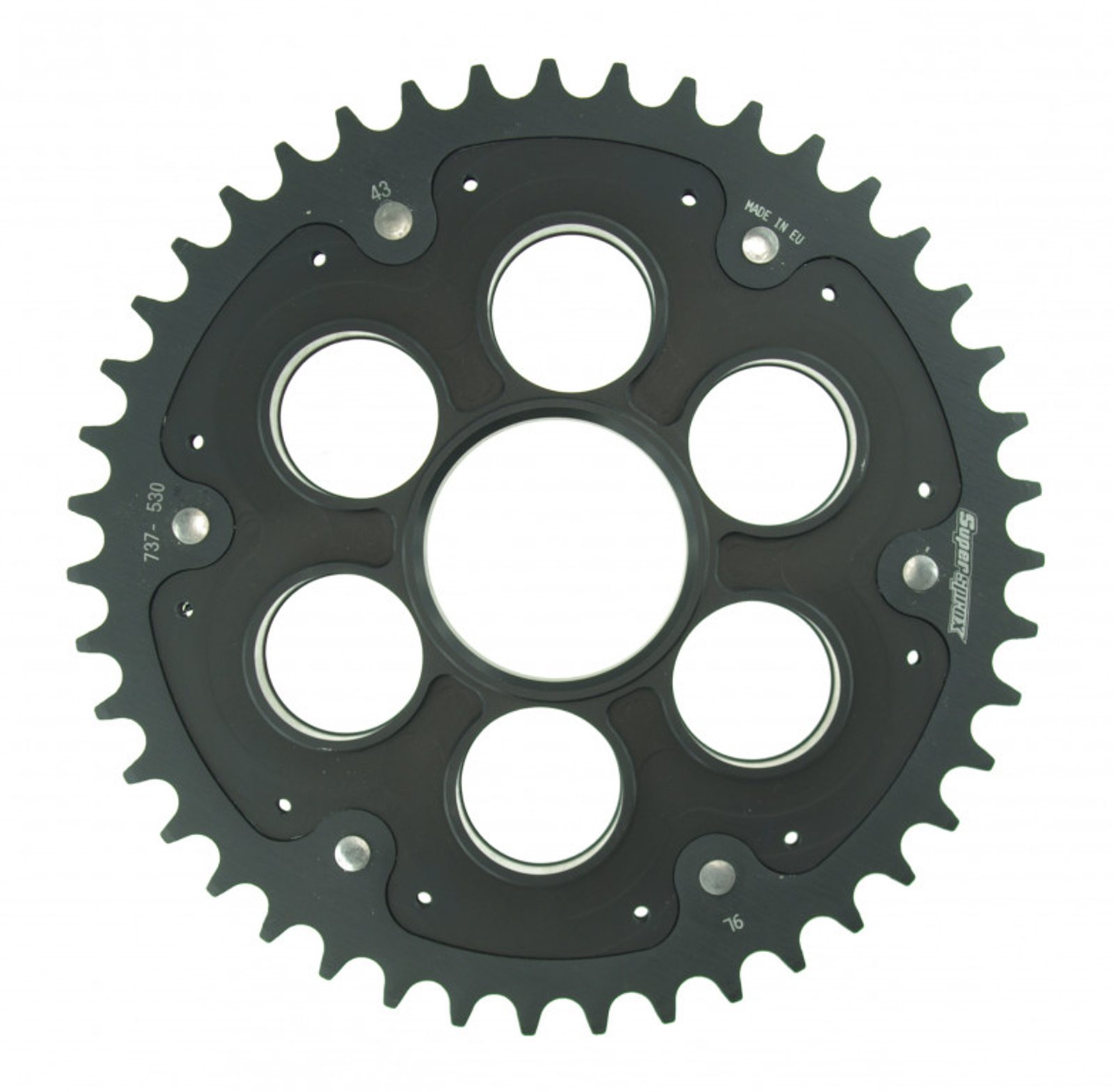 Řetězová rozeta STEALTH s hliníkovým unašečem SUPERSPROX RSA-737_530:43-BLK černá 43 zubů, 520