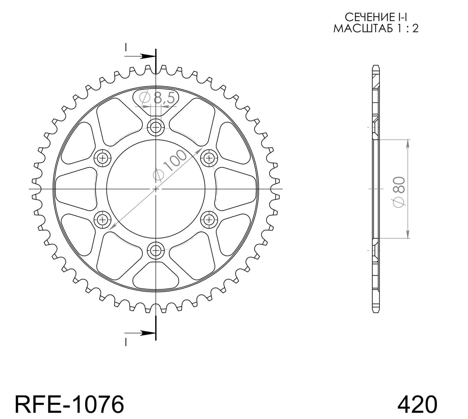Řetězová rozeta SUPERSPROX RFE-1076:48-BLK černý 48 zubů, 420