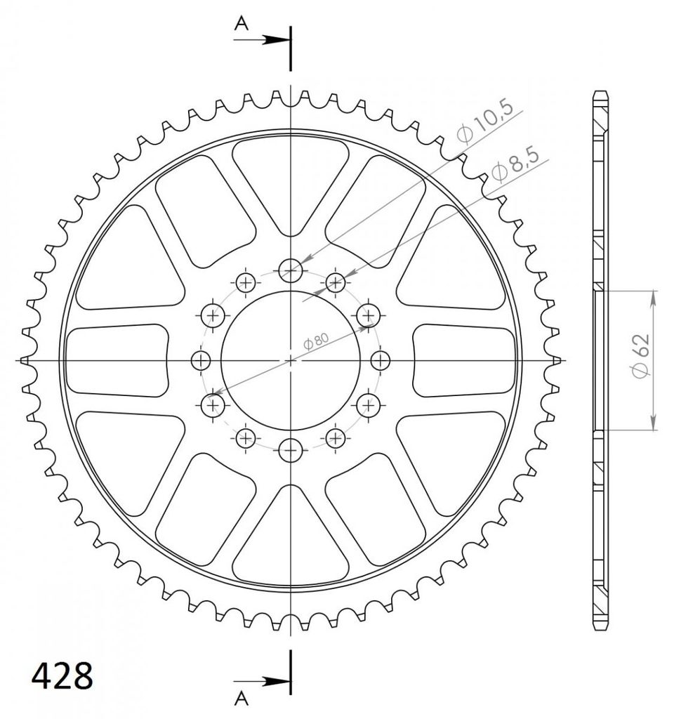 Řetězová rozeta SUPERSPROX RFE-1842:58-BLK černý 58 zubů, 428