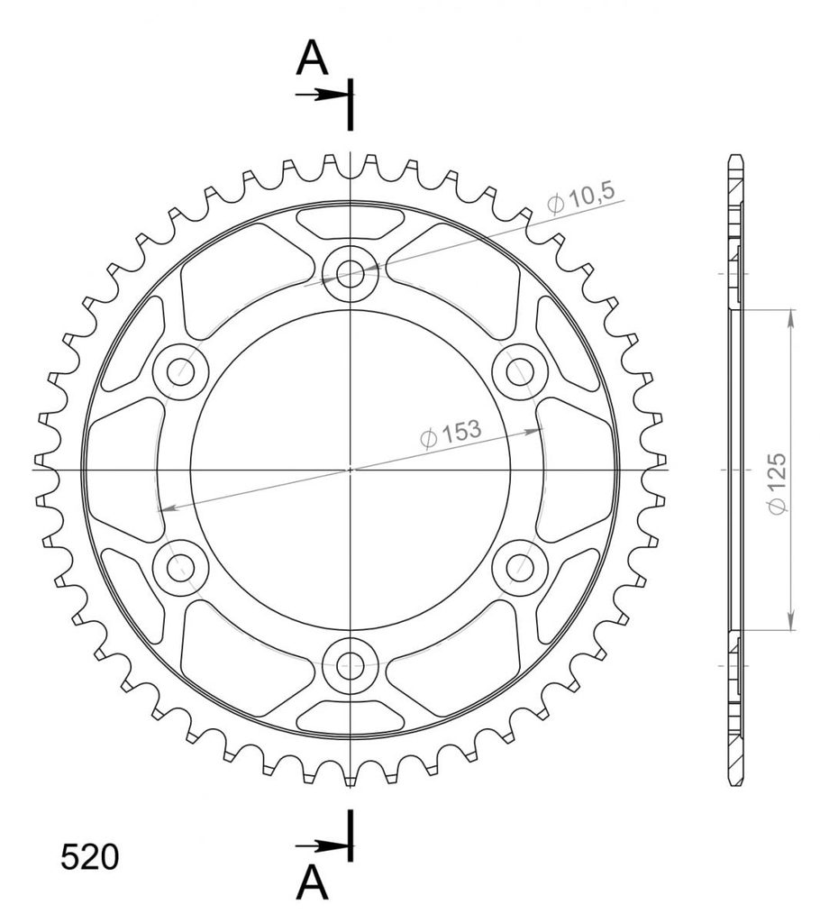 Řetězová rozeta SUPERSPROX RFE-301:47-BLK černý 47 zubů, 520