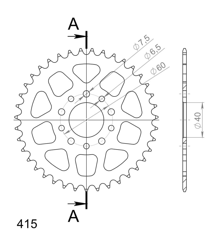 Řetězová rozeta SUPERSPROX RFE-451:39-BLK černý 39 zubů, 415