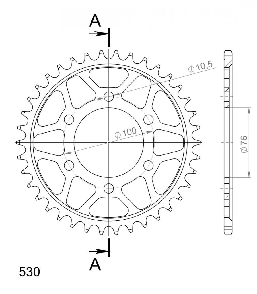 Řetězová rozeta SUPERSPROX RFE-816:38-BLK černý 38 zubů, 530