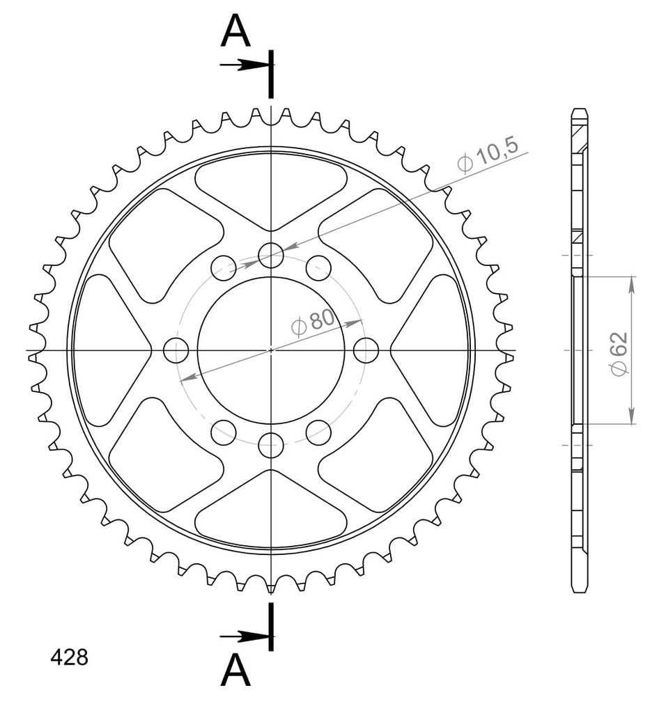 Pevnější zuby = vyšší životnost řetězové sady až o 10%. Rozeta 49z, řetěz 428. Více informací