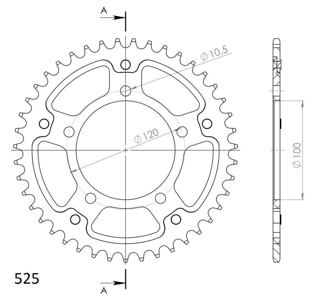Řetězová rozeta SUPERSPROX STEALTH RST-702:43-SLV stříbrná 43 zubů, 525