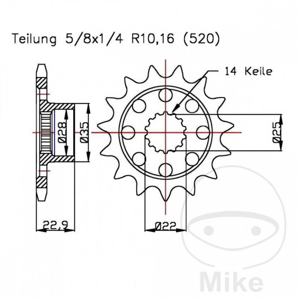 Kolečko 16z, řetěz 520