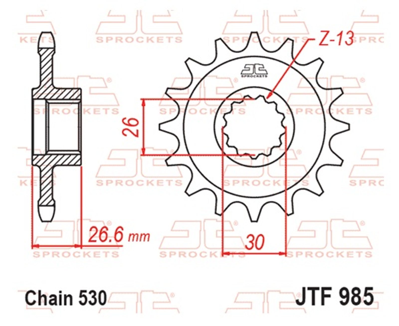 Řetězové kolečko JT JTF 985-19RB 19 zubů, 530 pogumované