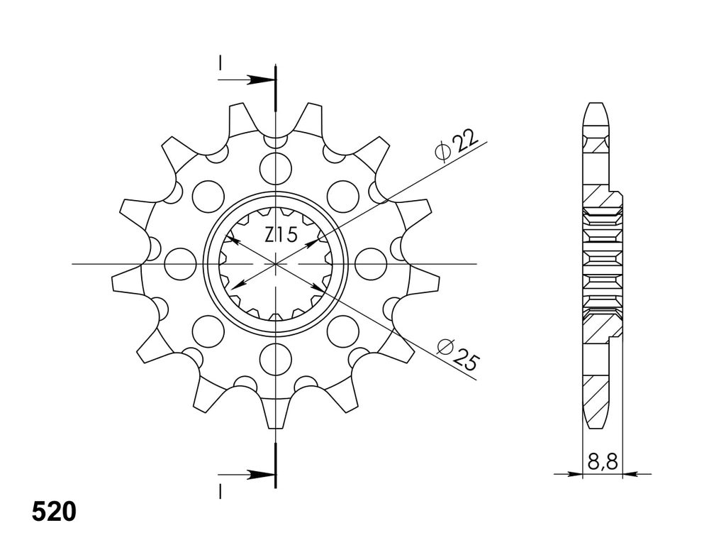 Pevnější zuby = vyšší životnost řetězové sady až o 10%. Kolečko 15z, řetěz 520. Více informací