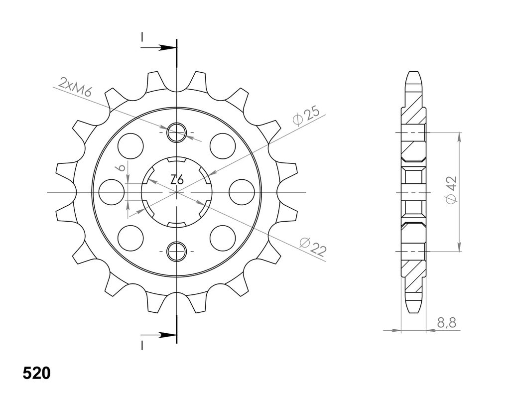 Pevnější zuby = vyšší životnost řetězové sady až o 10%. Kolečko 15z, řetěz 520. Více informací