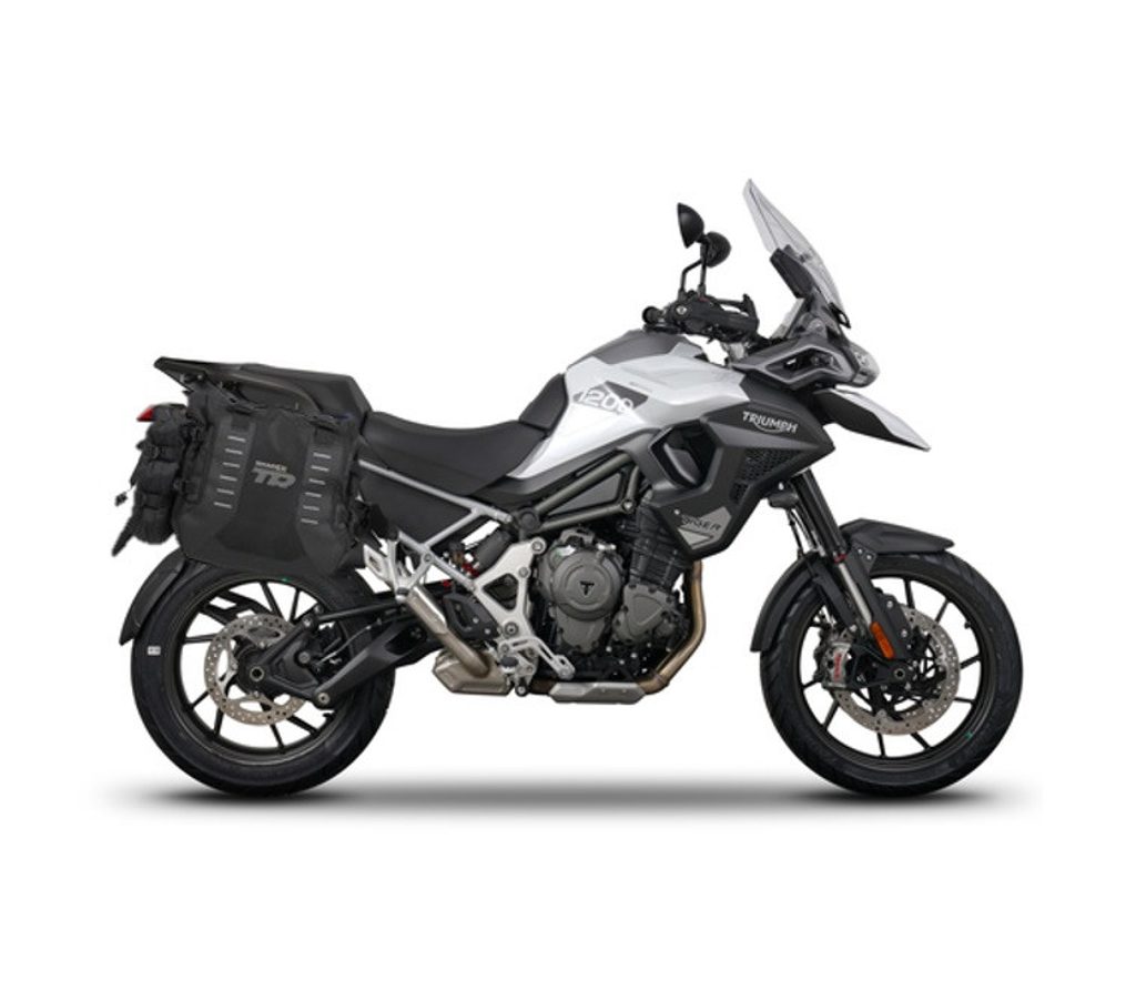 Sada ADVENTURE TERRA SHAD obsahuje sadu sedlových brašen TR40 určených pro jízdu v terénu a montážní sadu 4P SYSTÉM pro upevnění.