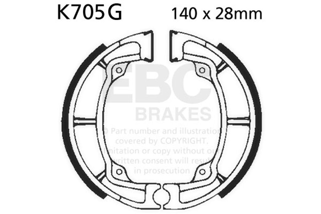 SADA BRZDOVÝCH ČELISTÍ EBC K705G DRÁŽKOVANÝ VČETNĚ PRUŽIN Prodej byl ukončen