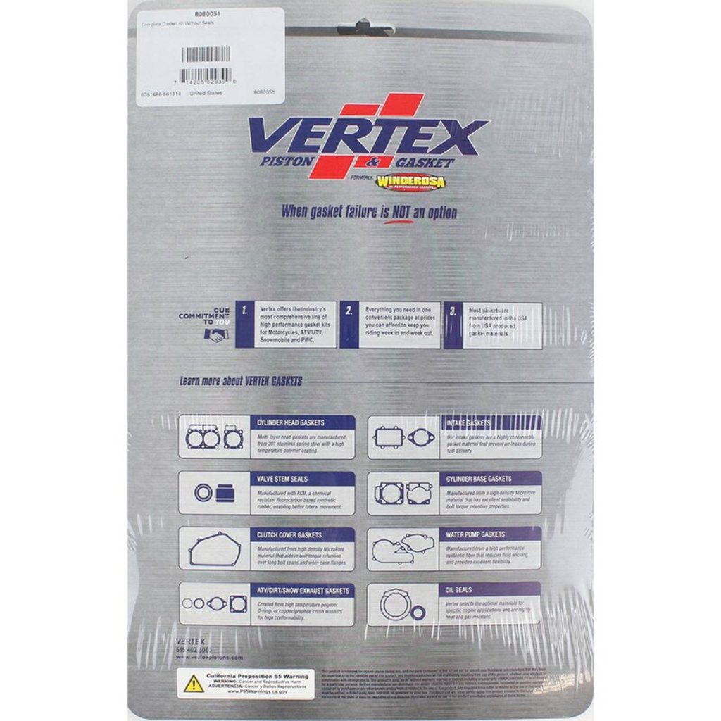 Vertex Complete Gasket Kit Without Seals, ea, 1