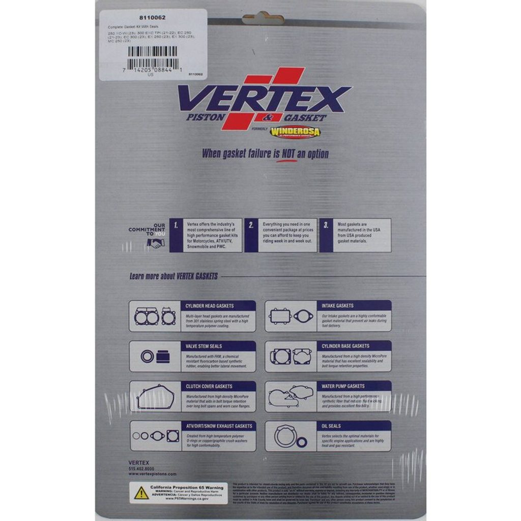 Vertex Complete Gasket Kit With Seals, ea, 1