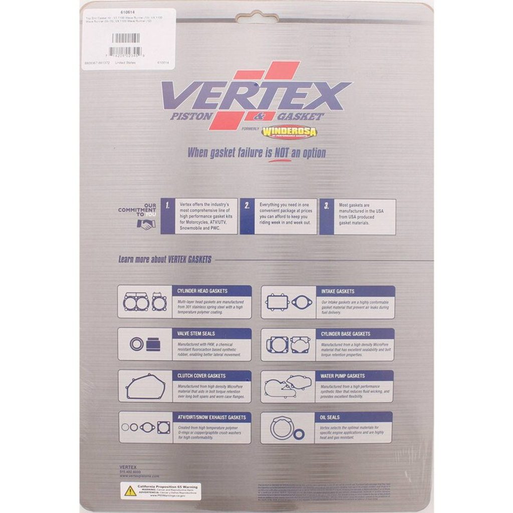 Vertex Top End Gasket Kit, ea, 1