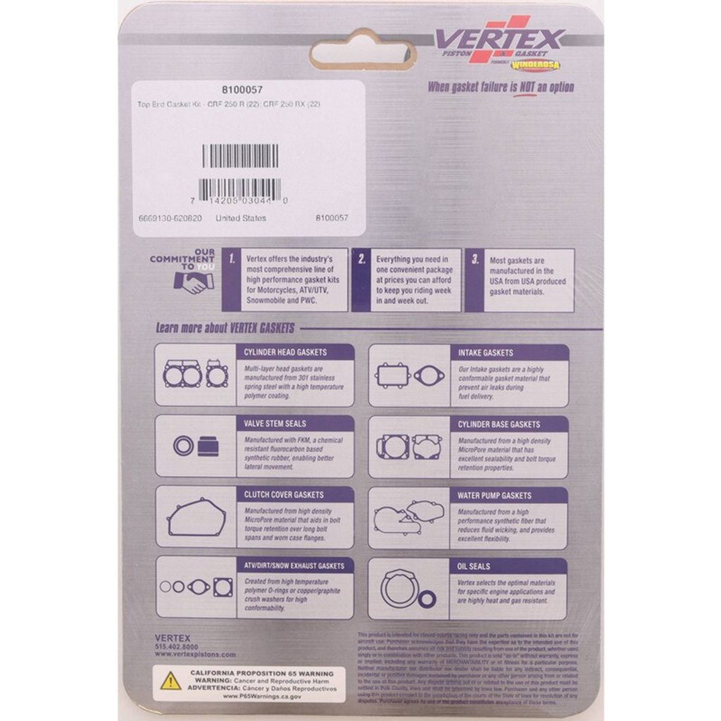 Vertex Top End Gasket Kit, +3mm Big Bore Top End Gasket Kit, ea, 1