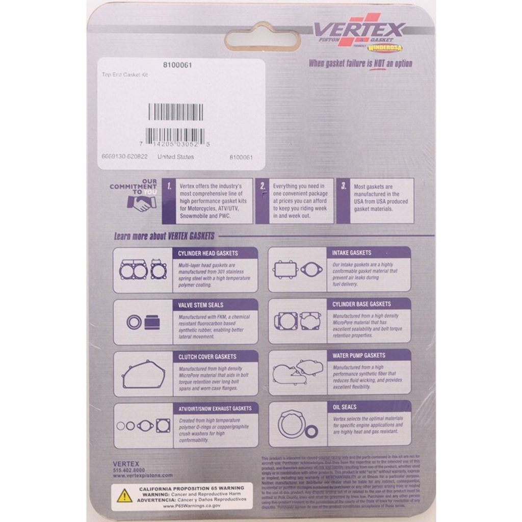 Vertex Top End Gasket Kit, +3mm Big Bore Top End Gasket Kit, ea, 1