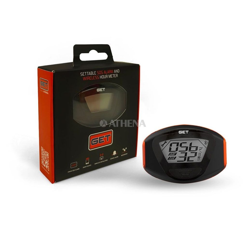 GET Smart SOS je inovativní zařízení, které kombinuje nastavitelný SOS alarm a bezdrátový měřič motohodin. Je vybaven interním akcelerometrem, který detekuje pád motorky a a automaticky odesílá oznámení SOS s GPS polohou vybraným kontaktům pomocí bezplatné aplikace dostupné pro iOS i Android.