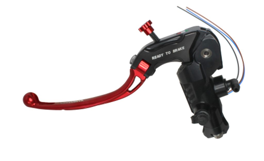 Spojkový hlavní válec (READY TO BRAKE) ACCOSSATO 16x18 s červenou výklopnou páčkou (matice+páčka)