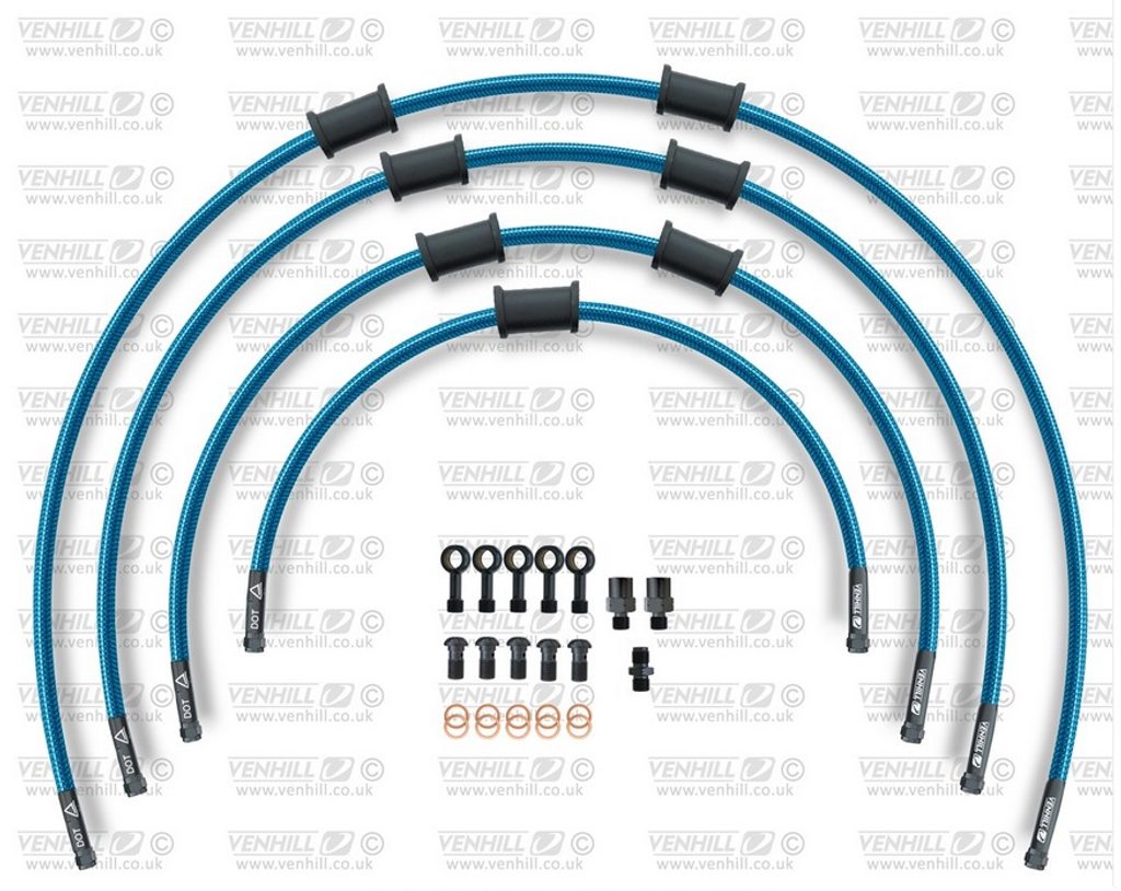 STANDARD Hadice přední brzdy sada Venhill POWERHOSEPLUS BMW-10012FB-TB (4 hadice v sadě) průhledně modré hadice, černé koncovky