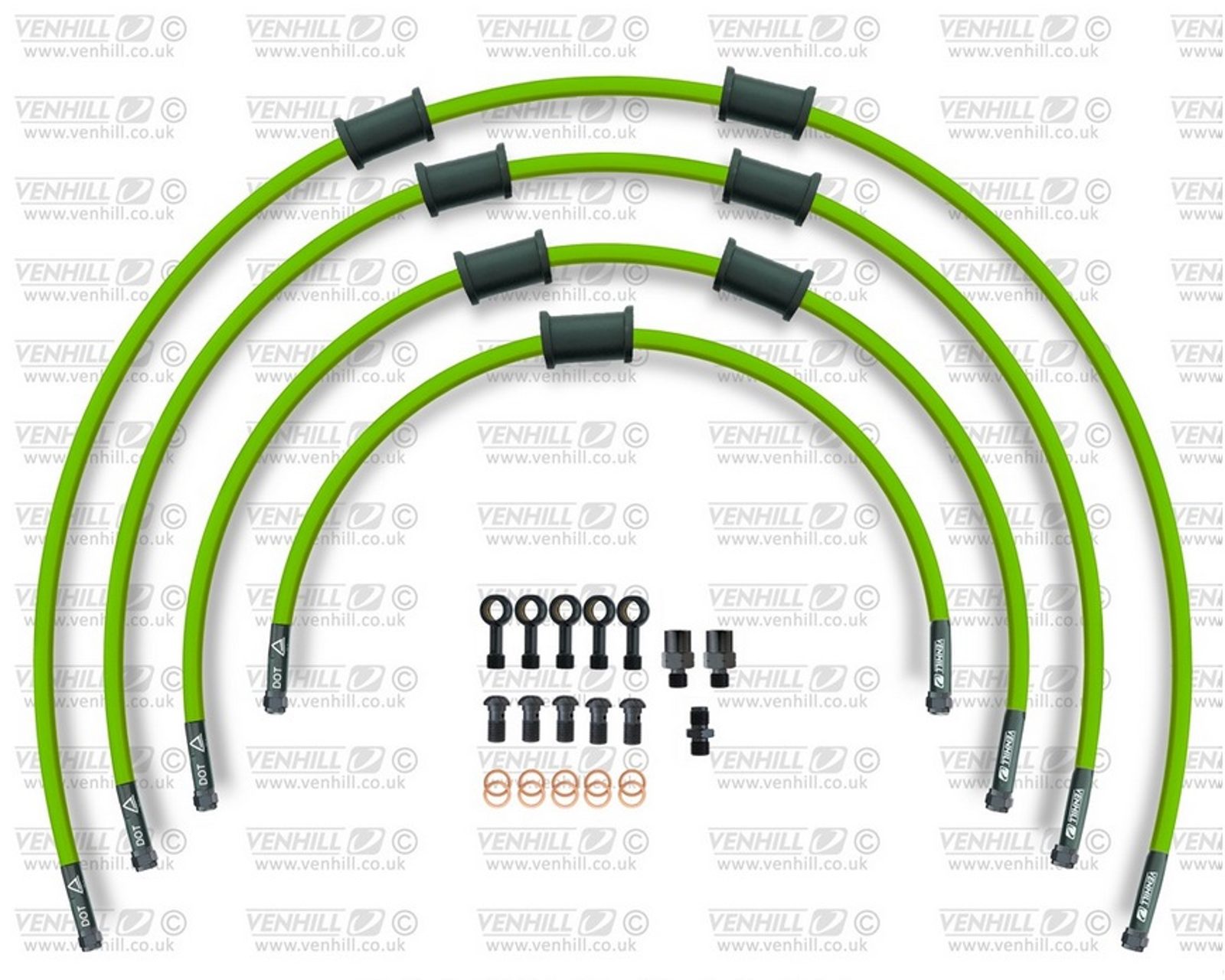 STANDARD Hadice přední brzdy sada Venhill POWERHOSEPLUS BMW-11005FB-GR (4 hadice v sadě) zelené hadice, černé koncovky