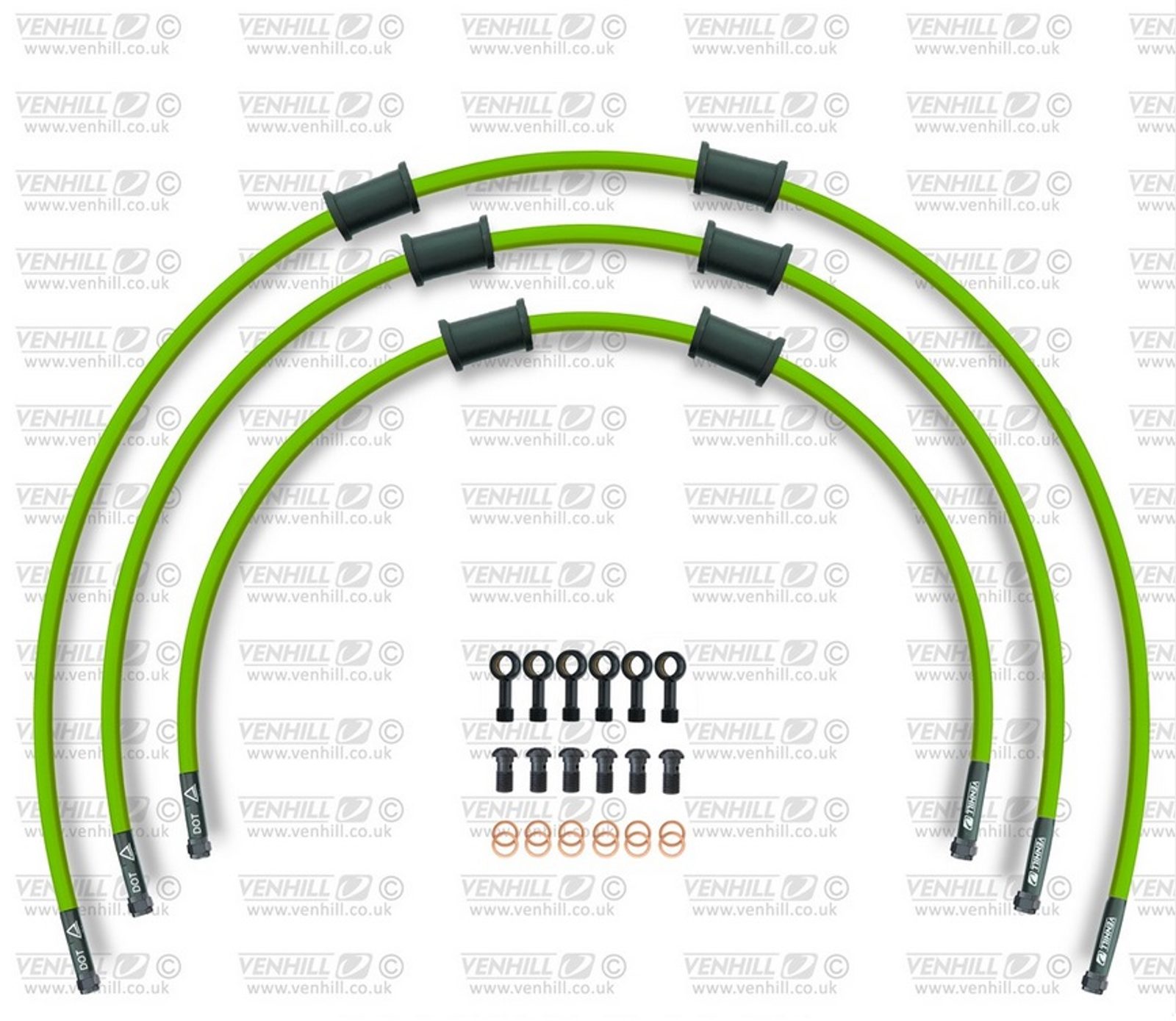 STANDARD Hadice přední brzdy sada Venhill POWERHOSEPLUS GUZ-11002FB-GR (3 hadice v sadě) zelené hadice, černé koncovky