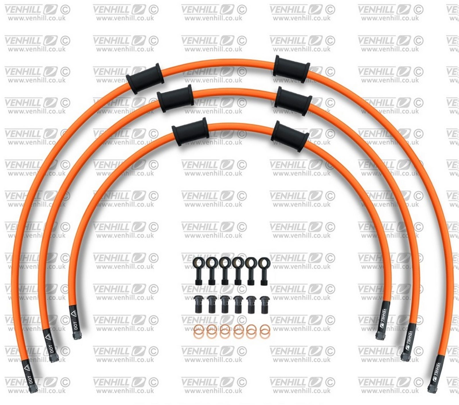 STANDARD Hadice přední brzdy sada Venhill POWERHOSEPLUS KAW-5005FB-OR (3 hadice v sadě) oranžové hadice, černé koncovky