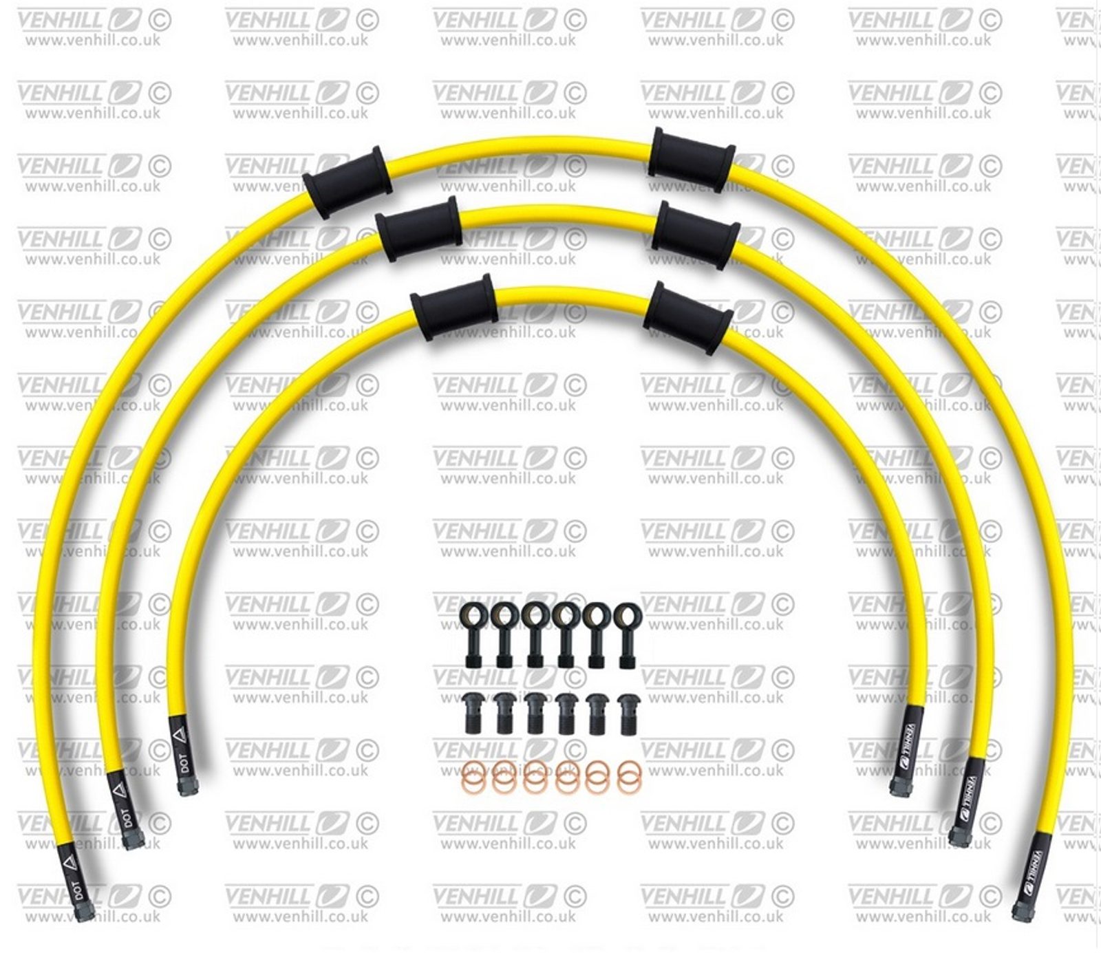 STANDARD Hadice přední brzdy sada Venhill POWERHOSEPLUS KAW-5006FB-YE (3 hadice v sadě) žluté hadice, černé koncovky