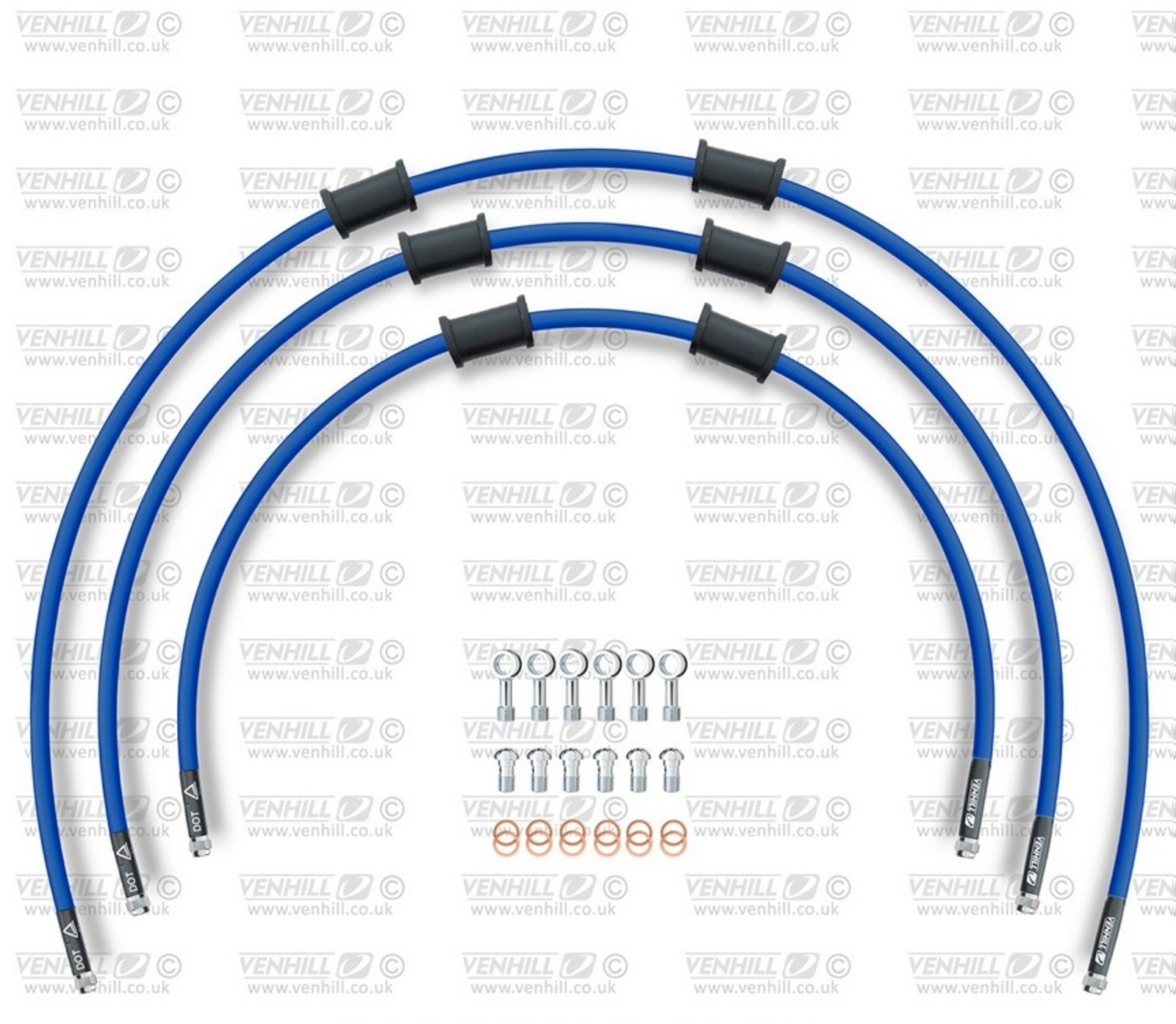 STANDARD Hadice přední brzdy sada Venhill POWERHOSEPLUS KAW-7003F-SB (3 hadice v sadě) modré hadice, chromové koncovky