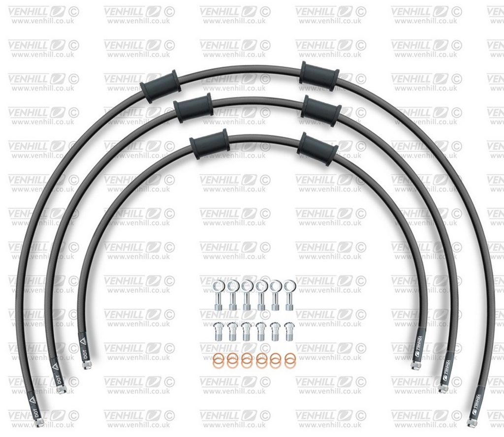 STANDARD Hadice přední brzdy sada Venhill POWERHOSEPLUS SUZ-14003F-BK (3 hadice v sadě) černé hadice, chromové koncovky