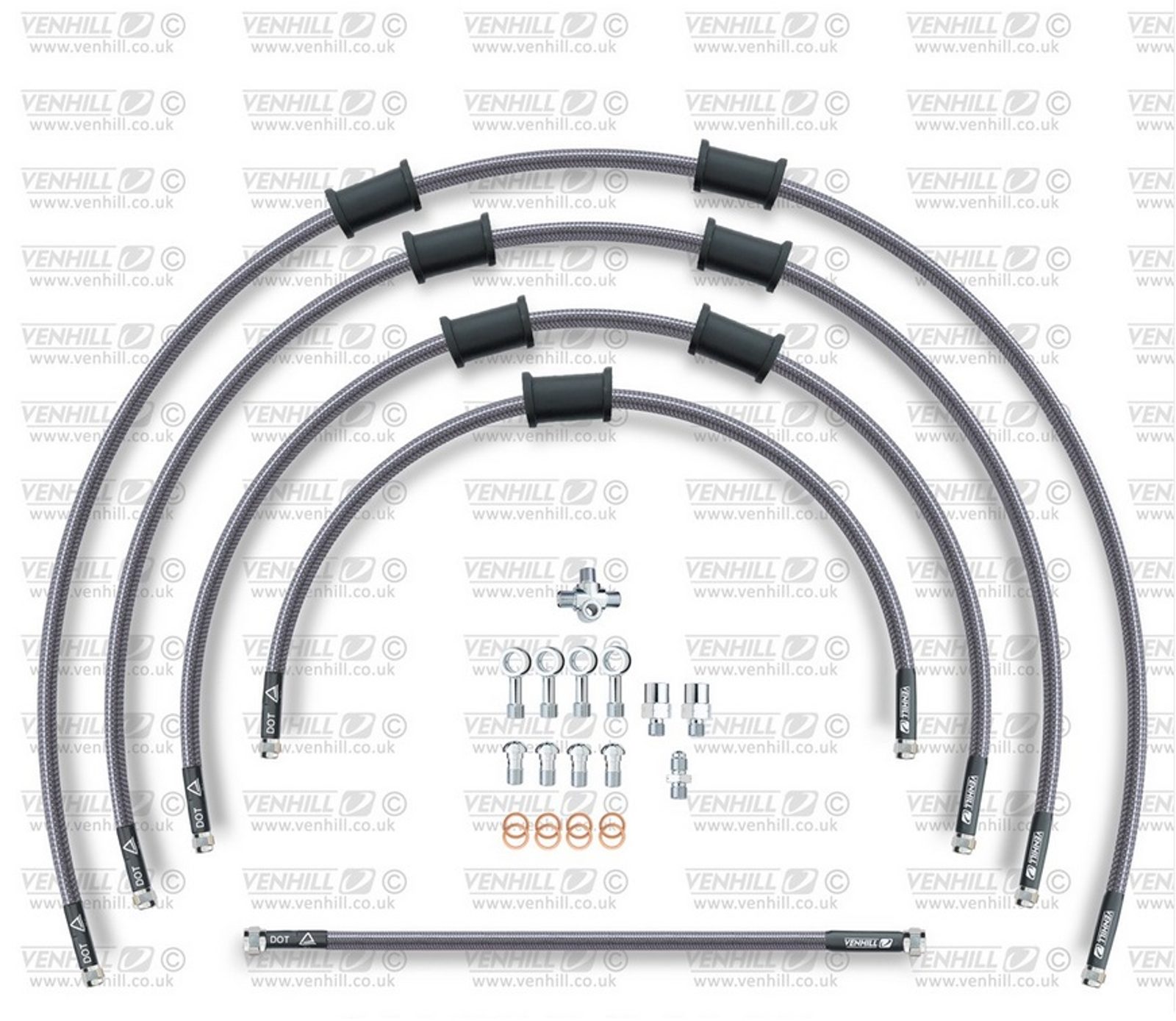 STANDARD Hadice přední brzdy sada Venhill POWERHOSEPLUS SUZ-6005F (5hadic v sadě) Průhledné hadice, chromové koncovky