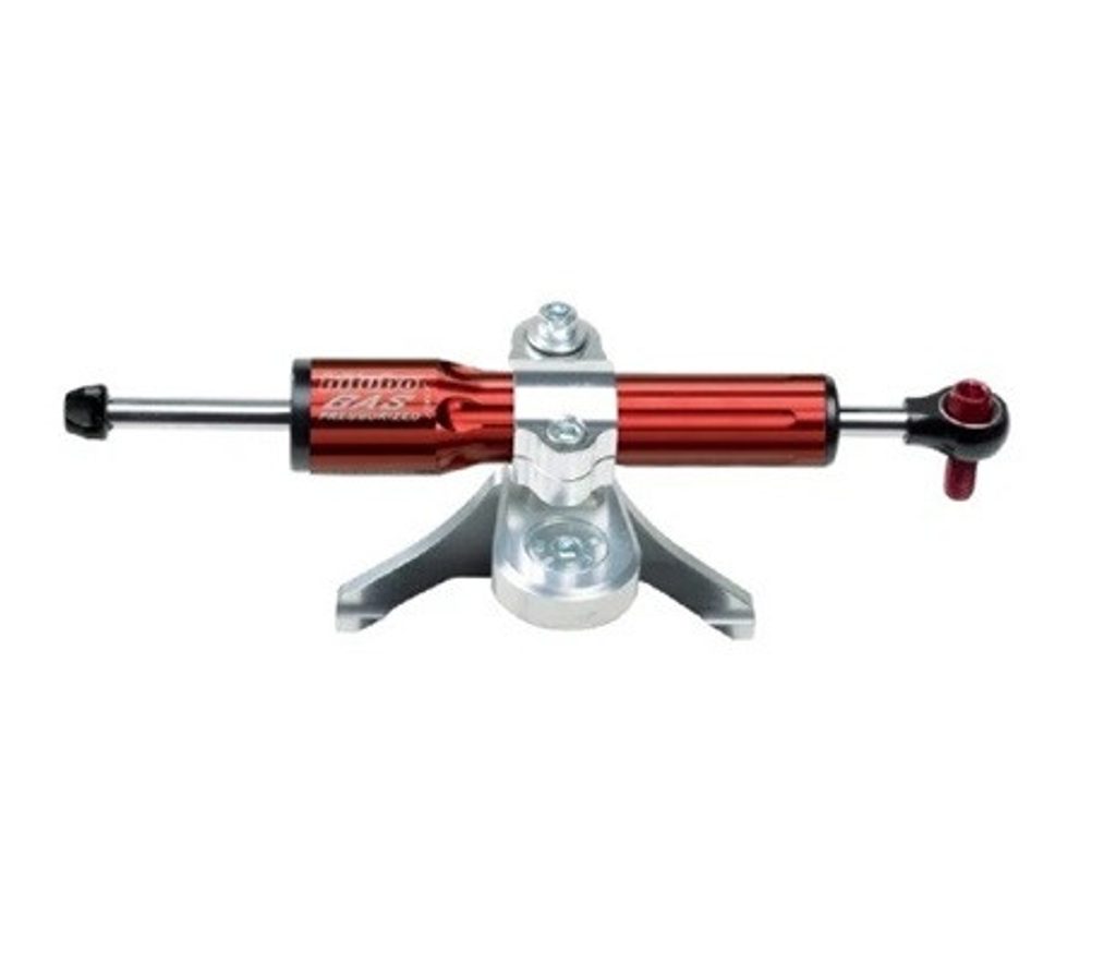 Steering damper kit for over tank mounting with red shock absorber
