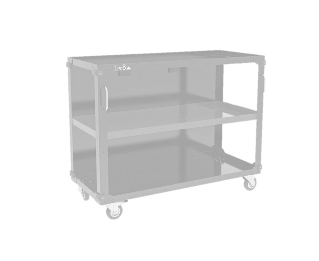 Podstolní vozík délky 1200 mm se třemi policemi. Lze jej integrovat pod naše pracovní stoly a je oboustranný – zadní panel zakrývá uložený materiál.
