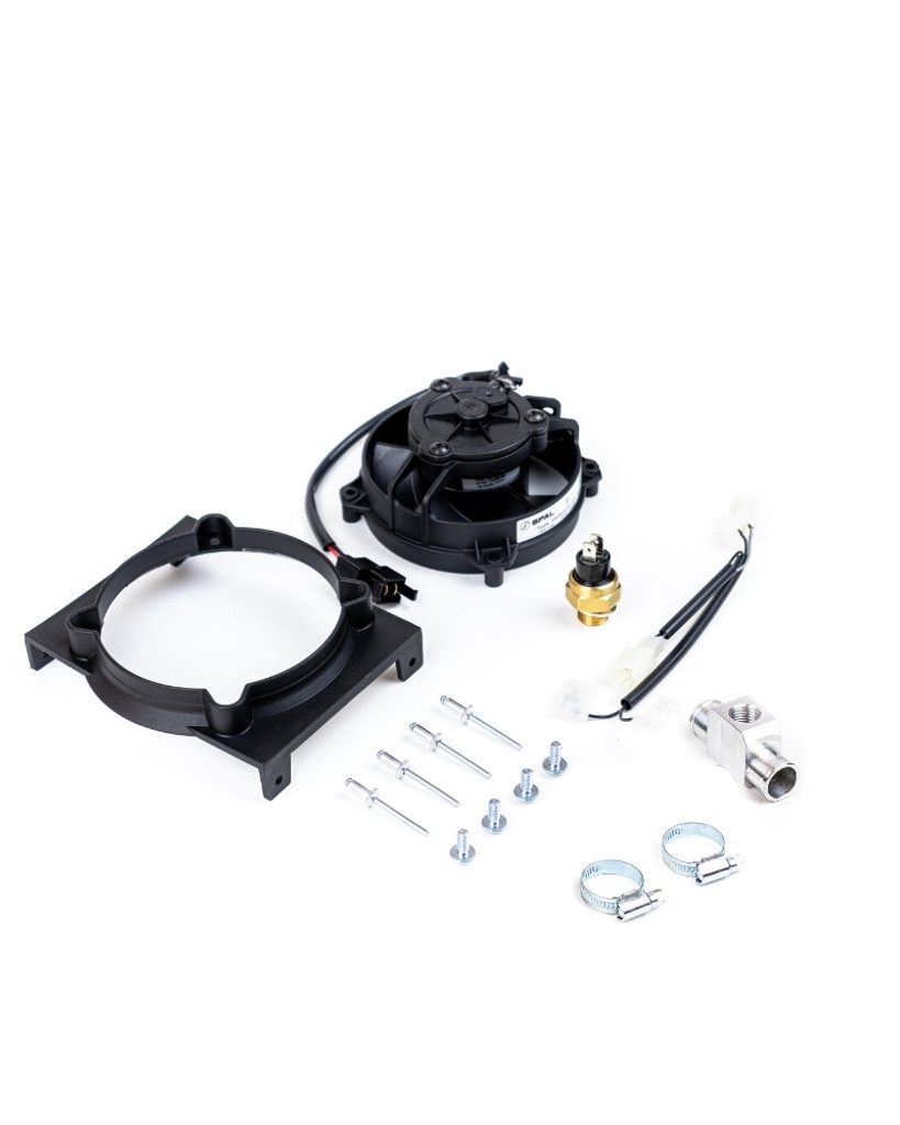 SPAL Fan Kit obsahuje originální 4-palcový ventilátor a veškeré montážní doplňky pro Beta RR. Díky termospínači ventilátor automaticky spustí chlazení při překročení určité teploty motoru, čímž se předejde přehřátí a umožní dokončení jízdy či závodu bez poškození motoru.