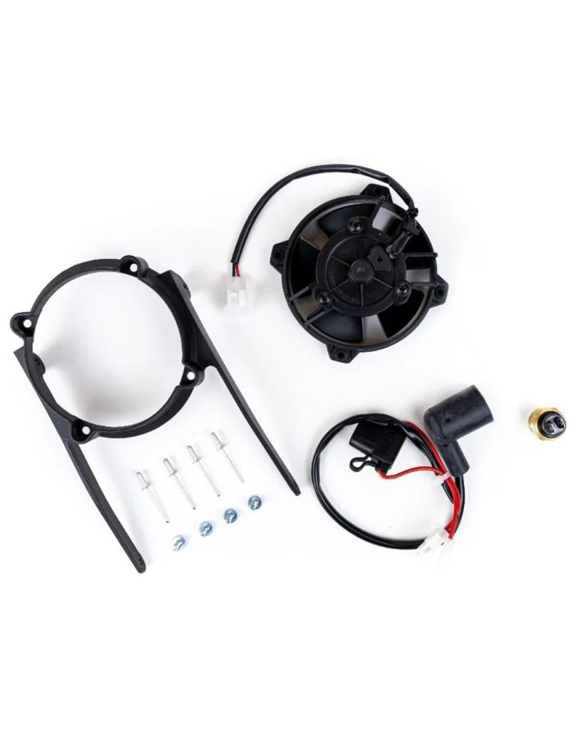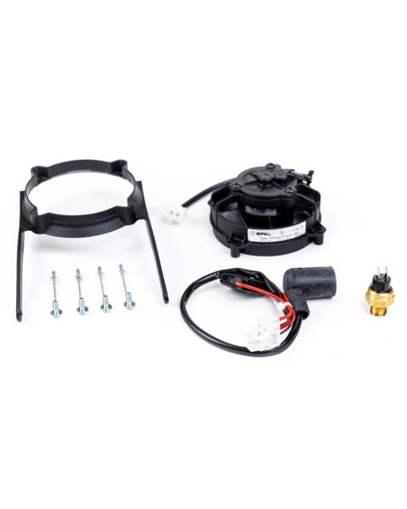 Tato sada obsahuje originální SPAL 4-palcový ventilátor chladiče a veškeré montážní příslušenství pro KTM a Husqvarnu. Termospínač snímá teplotu motoru a při přehřátí spustí ventilátor, který efektivně ochladí motor včas, aby se předešlo problémům během jízdy.