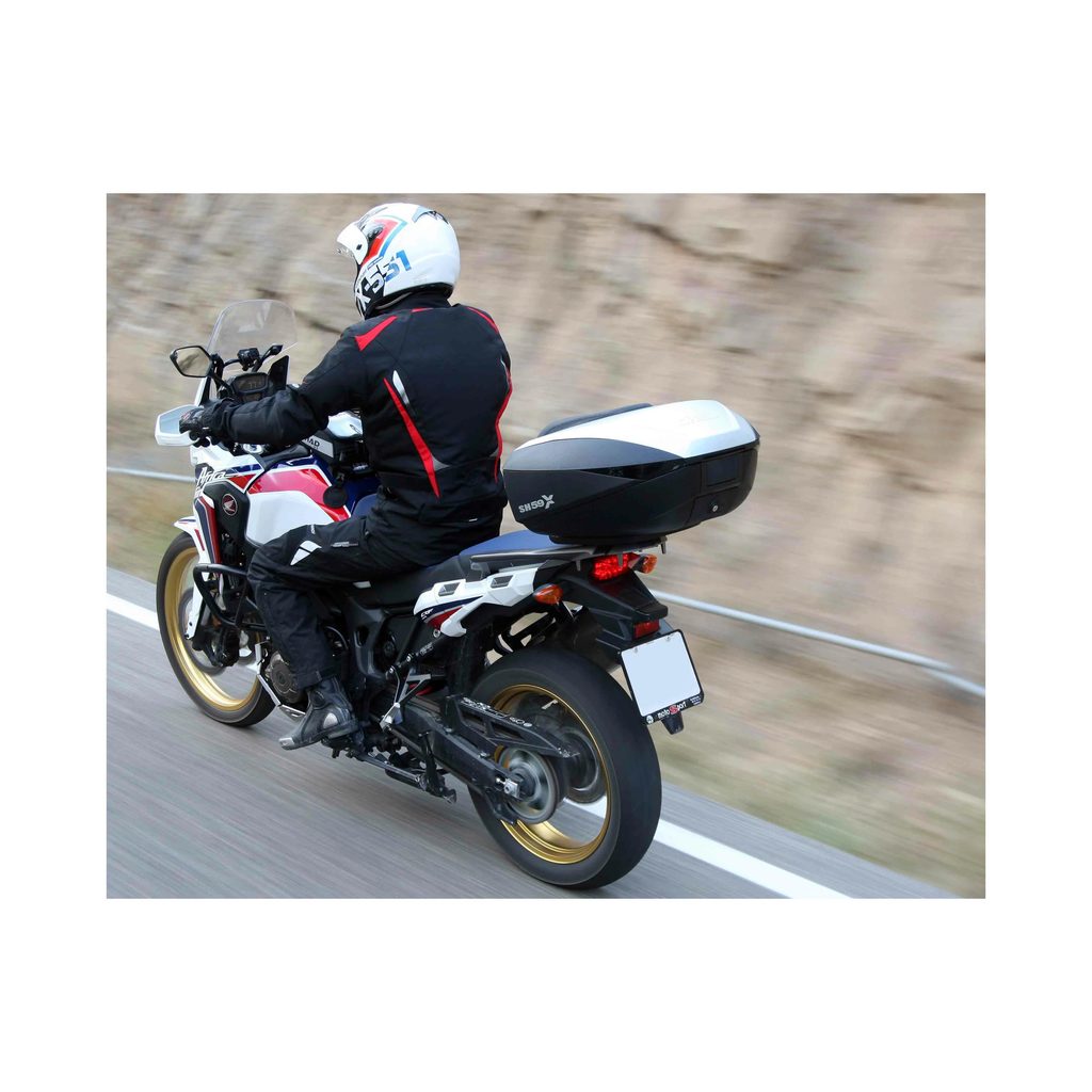 SH59X je jedinečný vrchní kufr na motorku na trhu. Jeho inovativní design umožňuje regulovat objem ve 3 různých polohách během několika sekund (46, 52 a 59 litrů), a je tak možné do něho uložit až 2 XXL helmy, aniž byste je museli pokládat na bok, plus cestovní doplňky. Uvnitř má tento kufr přidržovací popruhy, které zajišťují, že se náklad během jízdy nepohybuje.