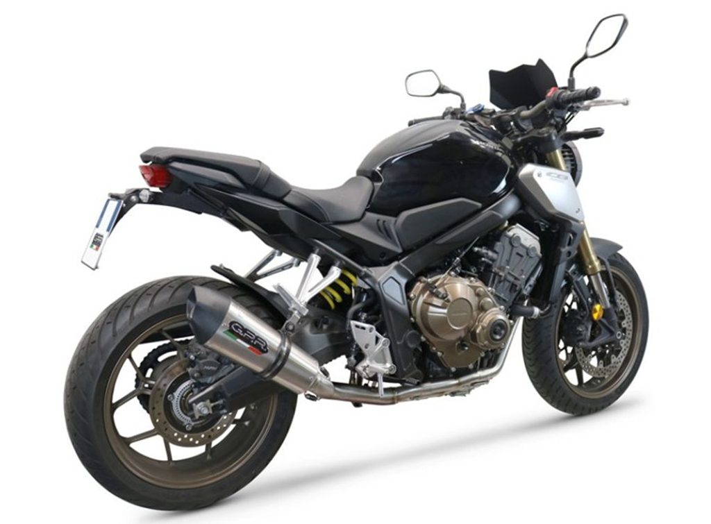 Nový GPR Grand Prix Evo Titanium - tlumič je kuželový, se speciálním tvarem, který začíná průměrem 90 mm a rozšiřuje se až na obvod 130 mm, s délkou závislou na motocyklu, pro který je určen. Má titanový plášť v přírodní barvě, černé CNC obráběné koncovky s pětiúhelníkovým výstupem a db-killer.