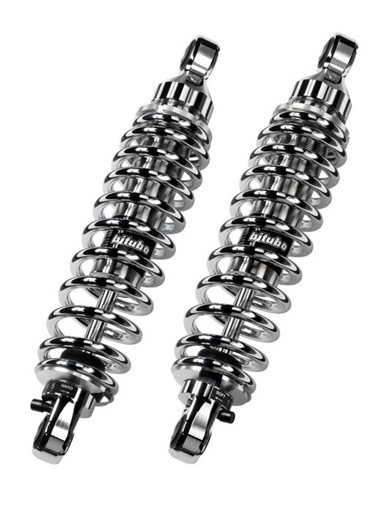 Zadní TWINSHOCK tlumič BITUBO WME0 s nastavitelným předpětím pružiny a odskokem chromová pružina